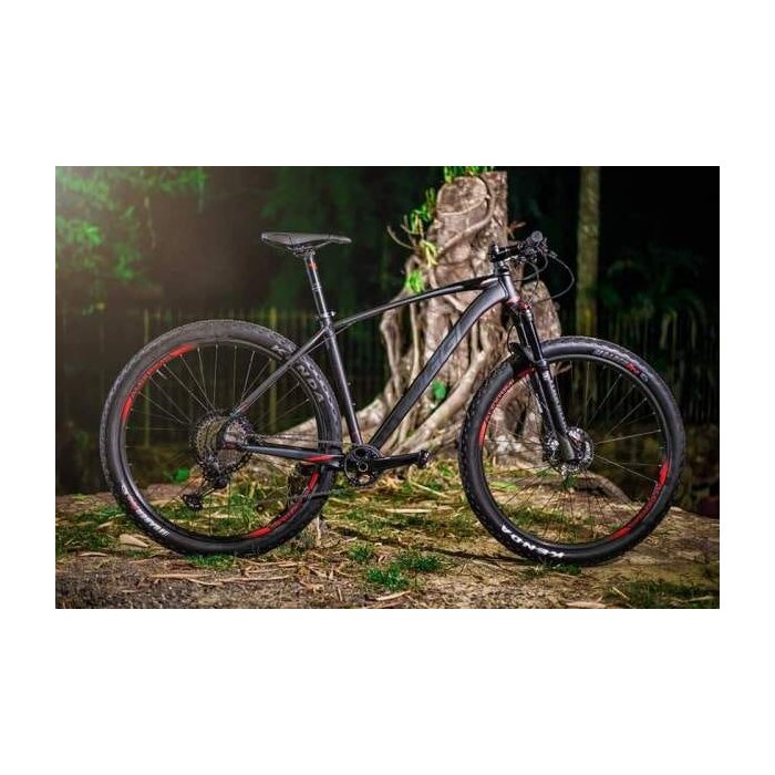 Bicicleta aro 29", com NOVO quadro de alumínio triple butted, com cabeamento interno, agora com eixo de 148mm (BOOST), movimento central PRESSFIT e garantia vitalícia, 12 velocidades 100% XT (cassete 10/51), coroa 32D, Suspensão Manitou Machete com eixo de 15mm (BOOST), pneu Kenda Saber Pro 2.35 de Kevlar e Tubeless, Aros AlexRims 2.4 vai com pedal Clip.