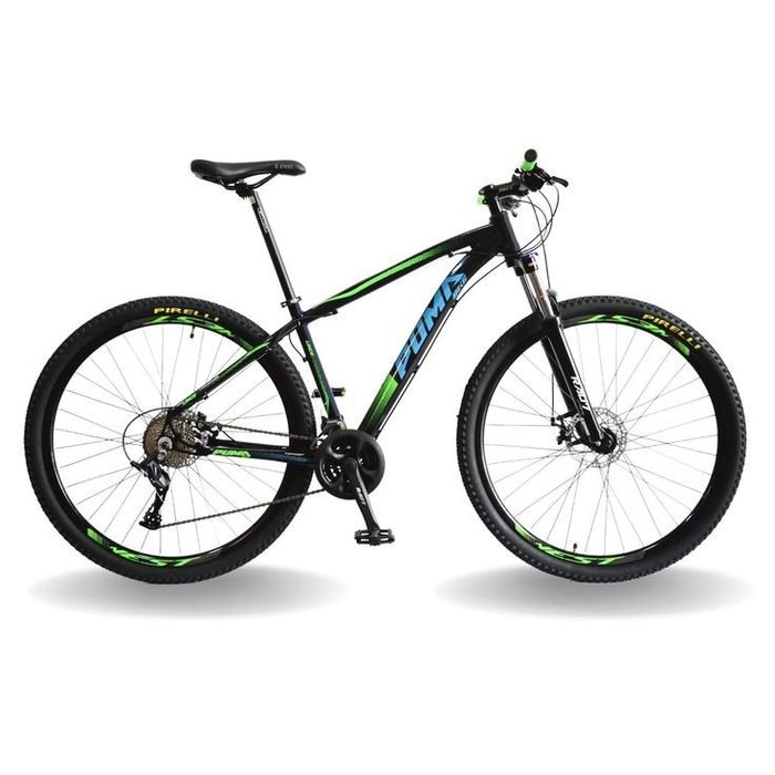 BICICLETA 29 PUMABIKE LINCE 27V STEEZ, FREIO MEC, K7, SUSP TRAVA, PRETO VERDE E AZUL, 19 PRETO VERDE E AZUL