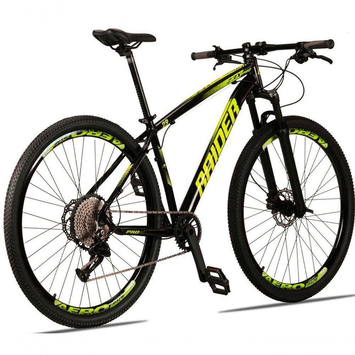 Sua busca pela bike ideal termina aqui! A Raider Z3X Pro 12v Garante seu desempenho e segurança em diferentes tipos de terreno! A bike possui um quadro altamente resistente e leve, fabricado em alumínio 6061, 12 combinações de marcha para você encarar qualquer subida, freios hidráulicos que garantem sua segurança em qualquer ; ladeira e uma suspensão 100mm com trava remota que proporciona conforto no seu percurso e mais desempenho quando travada! Aro: 29 | Marchas: 12 | Material: Alumínio | Modalidade: Passeio | Suspensão: Dianteira | Material do Quadro: Quadro Marca Raider - Modelo Z3X-PRO - Aro 29 em ALUMÍNIO 6061 | Modelo e Composição do Garfo: Garfo / Suspensão Aro 29 PRETO 100mm Trava no Guidão | Marca e Modelo do Sistema de Câmbio: Câmbio Traseiro index 12v / Trocador de Marchas Engate Rápido index - 12v / k7 11x50 | Marca e Composição do Pedivela: Alumínio Ponta quadrada | Tipo de Freio: Freio a Disco 160mm Preto - HIDRÁULICO | Modelo e Composição do Aro: Aros Aero 36 Furos Folha Dupla Alumínio | Pneus: Pneu 29 (Imp.) Cravo Baixo | Marca e Composição dos Cubos: Cubos K7 em Alumínio p/ Disco 36f Preto com Blocagens - Esferados | Modelo e Composição do Guidão: Guidão Mega Over Expandido em Alumínio | Marca e Composição do Selim: Selim Sport PU | Material do Canote: Alumínio com carrinho 27,2mm | Importante: Bicicleta para passeios e trilhas leves, não indicada para manobras radicais e trilhas pesadas / Consulte o tamanho de quadro adequado à sua altura antes de realizar a compra. | Montagem do Equipamento: A montagem é de responsabilidade do cliente, sugerimos que seja efetuada por uma oficina especializada. | Garantia do Fabricante: 90 dias. A garantia será validada para as bicicletas montadas e revisadas por uma oficina especializada e é referente apenas ao primeiro proprietário | Informação Relevante: Pode haver alguma diferença de tonalidade entre a imagem e o produto real, por conta do tratamento de imagens e a calibração de cores do monitor Cor: Preto+Amarelo