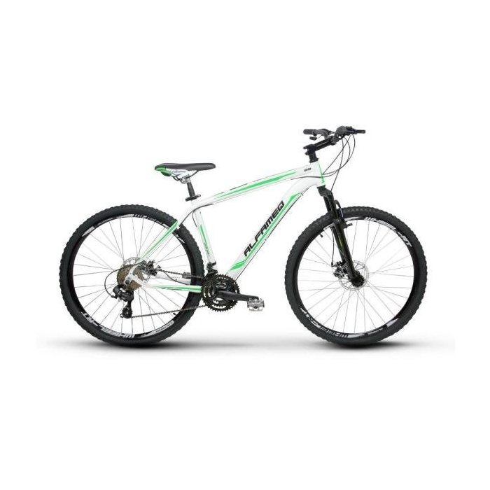 Bicicleta Alfameq Zahav Aro 29 Freio Disco 24 MarchasInformações Técnicas:Marca AlfameqModelo ZahavAro aero 29 alumínio AlfameqCubo dianteiro/traseiro 36f alumínio com blocagem pretoRaio 290x2.0 ZincadoCâmara de ar 29 ImportadaPneu 29x1.95 preto ImportadoSelim MTB Siam preto Royal CicloCanote de selim 27,2 de AlumínioAbraçadeira de alumínio com blocagem pretoMovimento central com rolamento ImportadoMovimento de direção Ahead Set preto ImportadoPedivela com engrenagem tripla em alumínio pretoAlavanca Eze Fire de 8 velocidades ImportadoSuporte de guidão alumínio ahead set preto Guidão curvo expandido alumínio pretoRoda livre de 8 velocidades index ImportadoCâmbio dianteiro TZ 31 ShimanoCâmbio traseiro TX 800 sem gancheira ShimanoCorrente Fina Index ImportadoPedal 9/16 alumínio ImportadoGarfo de Suspensão 29 Over em aço preto importadoFreio à disco dianteiro e traseiro mecânico ImportadoGarantia: 03 meses contra defeito de fabricaçãoPaís de Origem BrasilCores: Branca/vermelho, Branca/verde, Preta/vermelho e Preta/verdeQuadro alumínio 29 Alfameq Zahav quadro padrão 17, recomendado para pessoas de 1,70m a 1,85m. Para pessoas acima de 1,85m recomendamos o quadro 19.IMPORTANTETodas encomendas possuem rastreamento por transportadora.A empresa não se responsabiliza por recolhimento obrigatório de Impostos ICMS por ST cobrado em alguns estados.Imagens meramente ilustrativas, podendo alterar sua estrutura de acordo com tamanho e cor escolhido.Kit Shimano: Para produtos com Kit Shimano, favor conferir peças e componentes na descrição do anúncio.Produto enviado pré-montado, faltando o encaixe da roda dianteira, guidão, selim e pedais. Sugerimos a regulagem de câmbio e freios devido o transporte.Caso a cor e tamanho não sejam informadas em um prazo de 7 dias, serão enviados a cor e tamanho disponíveis em estoque.Confira seus dados pessoais, dados de entrega e do produto antes de efetuar o pagamento, pois não será possível a alteração de dados, Nota Fiscal ou produto após a compra.