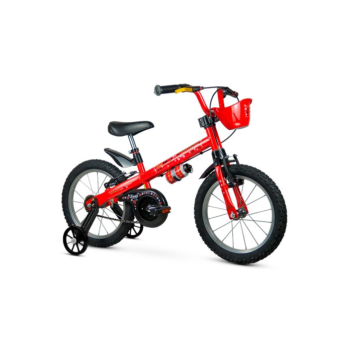 Bicicleta Aro 16 Nathor Lady Infantil Feminina Indicada para crianças a partir de 5 anos ou com altura entre 1,10m e 1,20m. Diversão e aventura com conforto e segurança! As bicicletas da linha Nathor 16" possuem materiais mais resistentes, trazendo pneus com câmara, quadro de aço carbono e garrafinha. Características Quadro, garfo e guidão em aço carbono; Limitador de giro do guidão; Freios v-brake com maçanetas em nylon reforçado e ajuste; Mesa headset com regulagem de ângulo do guidão; Regulagem de altura das rodinhas laterais; Aro em alumínio ou Aro em ABS; Para-lamas em ABS; Movimento de direção com esferas; Arruela com trava de segurança; Pneus com câmara; Abraçadeira do selim em alumínio; Garrafinha (e cestinha nos modelos femininos). Informações Técnicas Tamanho da roda: 16″ Altura máxima recomendada: 110 cm a 120 cm Peso máximo recomendado: 30 kg Peso do produto: 9,500 Kg Peso com a embalagem: 10,740 Kg Cubagem: 0,11 m³ Dimensões do produto (CxAxL): 107 cm x 69 cm x 53,5 cm Dimensões da embalagem (CxAxL): 97 cm x 48 cm x 23 cm