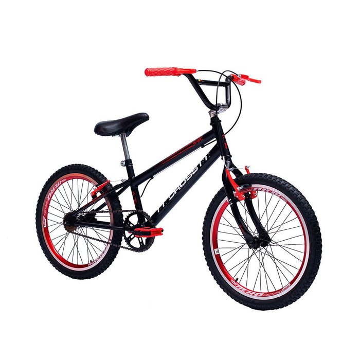 A bicicleta aro 20 BMX Cross Freestyle Aero Vermelha com Preto e pneus pretos é um modelo de bicicleta projetado para os entusiastas do BMX, que desejam uma bicicleta ágil e resistente para manobras e acrobacias.