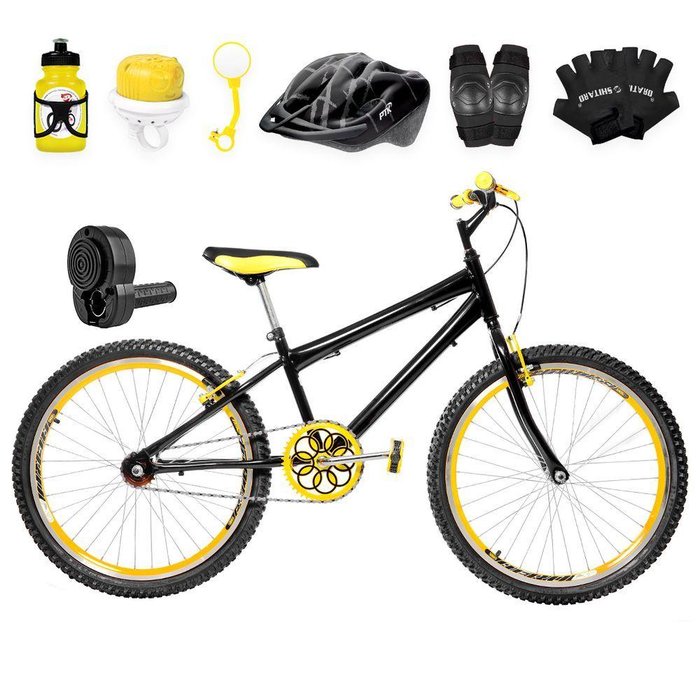 Bicicleta Aro 24 Aero + Kit Premium Preta e Amarela Preta e Amarela