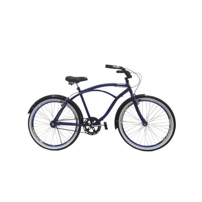 CARACTERÍSTICAS: QUADRO 26 CAIÇARA AÇO CARBONO ARO 26 AERO ALUMINIO CUBO ALUMÍNIO COM ROLAMENTO 36 FUROS PNEU ARO 26X1.90 SLICK FAIXA BRANCA FREIO V-BREAK DE NAYLON JOGO DE DIREÇÃO STANDER NECO GUIDÃO CAIÇARA BEACH SUPORTE CROSS 4 PARAFUSOS DE ALUMINIO EXPANDER CROSS ESPUMA DE GUIDÃO BEACH MANETE DE ALUMÍNIO CANOTE DE SELIM PARAFUSO DE SELIM SELIM EXTRA LARGO BEACH 2 MOLAS KALF PÉ DE VELA 165MM PEDAL PLATAFORMA NYLON METALCICLO DESCANSO LATERAL CATRACA 20 CORRENTE GROSSA IMPORTADA PAR DE PARALAMA IMAGENS MERAMENTE ILUSTRATIVAS. Montagem: A bicicleta segue montada e revisada, mas, por motivo de acomodação em embalagem para transporte, são retirados selim, pedais, guidão e roda dianteira. A instalação (por simples aperto) é de responsabilidade do cliente. Por motivo de transporte e manuseio, pode ser necessário efetuar nova regulagem de câmbio ao receber o produto. A Areia Bike não se responsabiliza pela revisão final da bicicleta, sugerindo que seja efetuada por oficina especializada.