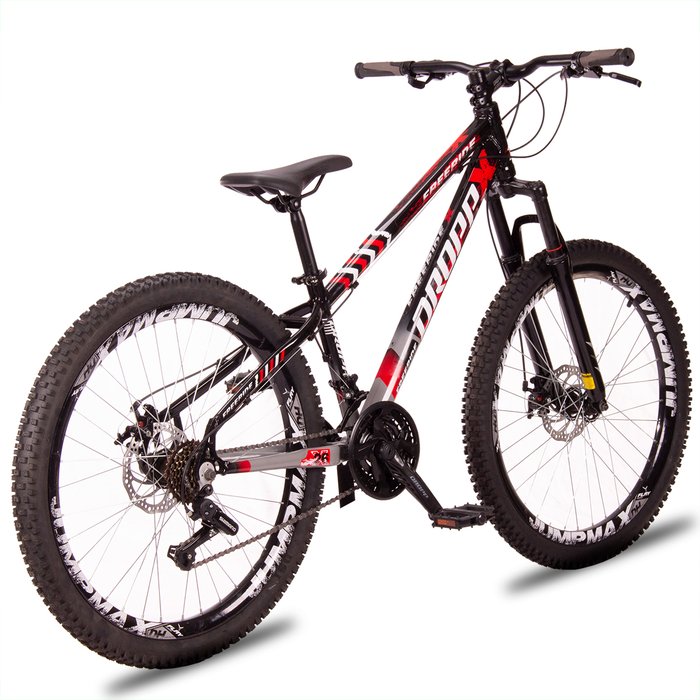 Bicicleta Aro 26 Dropp X Freeride 21 Marchas Aros Jumpmax DH Freio a Disco:Preto/Cinza-Vermelho Preto/Cinza-Vermelho
