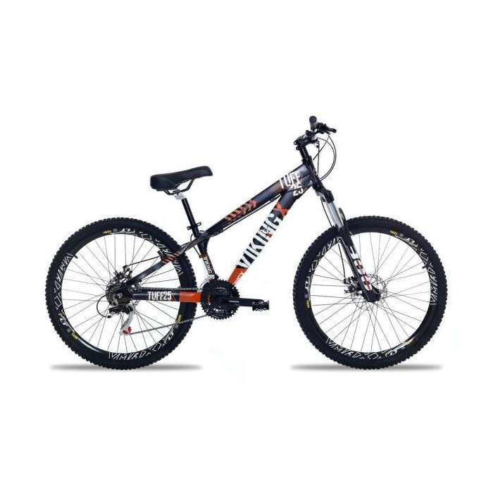 Bicicleta Vikingx X25 Tuff Freeride é uma excelente Bicicleta para quem busca diversão e descontração, seu quadro possui um incrível design com cores vibrantes produzido em Alumínio deixando muito mais resistentes e leves que os em aço carbono, Suspensão dianteira SPINNER 300 ótima qualidade e acabamento para suavizar as irregularidades do terreno, Freio a disco HIDRÁULICO SHIMANO maior segurança e eficiência nas frenagens e não necessita de manutenção periódica, Aros VMAXX da Vzan reforçados com folhas duplas marca reconhecida nacionalmente em questão de qualidade, com 21 velocidades dando a você o controle do ritmo da sua pedalada e pra fechar com chave de ouro montada com componentes SHIMANO que proporciona uma maior durabilidade e desempenho com trocas de marchas mais suaves e precisas. Quadro: Aro 26 Vikingx Tuff-X25 em Alumínio 6061 Suspensão: Garfo 26 Spinner 300 preto fosco com Regulagem Marchas: 21 Modalidade: Passeio/Urbano Rodas Aros: Vmaxx Vzan folha dupla 36 Furos Alumínio (Cor: Preto c/ Branco) Raios: Preto 2.0 X 255mm Zincado Pneus: 26X2.0 Cravo Preto Câmaras: 26 com Válvula Americana (bico grosso) Cubos: Cubo esferado Alumínio 36 Furos com Blocagem Transmissão Alavanca/Trocadores: SHIMANO ALTUS M310 3x7 Velocidades Câmbio Dianteiro: SHIMANO TOURNEY TZ 500 Câmbio Traseiro: SHIMANO TOURNEY TZ 400 Movimento Central: 34,7 selado c/ rolamento 122mm Preto (Rolamentos Blindados Contra Água e Poeira) Pedivela: SHIMANO TOURNEY TY301 24/34/42 Dentes Roda livre: SHIMANO TOURNEY TZ21 para 7 Velocidades Corrente: Indexada 7 Velocidades Componentes Freios: Disco Hidráulico SHIMANO ALTUS MT200 Dianteiro e Traseiro 160mm Movimento de Direção: Semi-Integrado Ahedset Preto Guidão: 31.8mm em Alumínio Preto Suporte de Guidão: 31,8 X 60mm em Alumínio Preto Manopla: Trix Preto Selim: Elleven Preto Confortável Canote de Selim: 27.2mm em Alumínio Preto Anéis espaçadores de Direção: 10mm Preto 4 unidades Abraçadeira de Selim: 31.8mm Alumínio preto com blocagem. Pedal: Nylon Preto Plataforma 9/16 para no Maximo 75 quilos Graxa utilizada especial para rolamentos *Fotos Meramente Ilustrativas, Verificar o descritivo das peças IMPORTANTE - Nos reservamos o direito de trocar peças por similar ou superior sem mudar a características do Produto; MONTAGEM - A Bicicleta vai montada, engraxada e revisada, porém por motivo de acomodação na embalagem de transporte são retirados selim, pedais, guidão e roda dianteira, devido ao transporte sugerimos uma nova regulagem; - A Instalação (por simples aperto de parafusos allem tamanho 4 e blocagens) é de responsabilidade do cliente, a e Bicicletaria Motonbike não se responsabiliza pela revisão final da Bicicleta. GARANTIA - A garantia não cobre defeitos por mau uso ou pela montagem e revisão inadequada do produto, será validada somente para bikes revisadas por uma oficina especializada e é referente apenas ao primeiro proprietário; - A garantia não se aplica para os itens de desgaste natural, tais como: Pneu, câmaras (que podem ser furadas em qualquer momento), centragem de aros, componentes da transmissão (corrente, engrenagens do pedivela, engrenagens do cassete e cubos); - Confira a mercadoria no ato da Entrega.