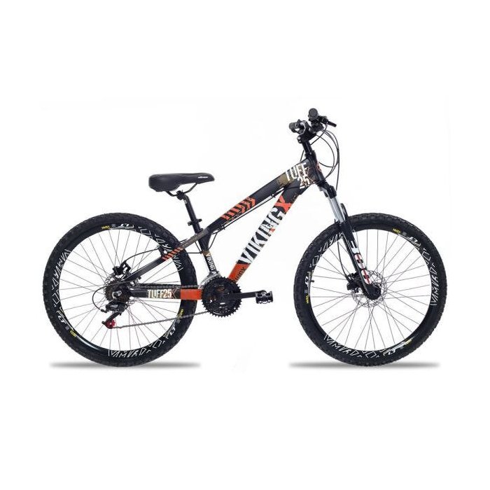 Bicicleta Vikingx X25 Tuff Freeride é uma excelente Bicicleta para quem busca diversão e descontração, seu quadro possui um incrível design com cores vibrantes produzido em Alumínio deixando muito mais resistentes e leves que os em Aço Carbono, Suspensão dianteira SPINNER 300 ótima qualidade e acabamento para Suavizar as irregularidades do terreno, Freios a disco mecânico, Aros VMAXX da Vzan Reforçados com folhas duplas marca reconhecida nacionalmente, com 21 velocidades dando a você o controle do ritmo da sua pedalada. Quadro: Aro 26 Vikingx Tuff-X25 em Alumínio 6061 Suspensão: Garfo 26 Spinner 300 preto fosco com Regulagem Marchas: 21 Modalidade: Passeio/Urbano Rodas Aros: Vmaxx Vzan folha dupla 36 Furos Alumínio (Cor: Preto c/ Branco) Raios: Preto 2.0 X 255mm Zincado Pneus: 26X2.0 Cravo Preto Câmaras: Aro 26 com Válvula Americana (bico grosso) Cubos: Cubo esferado Alumínio 36 Furos com Blocagem Transmissão Alavanca/Trocadores: Rapid-Fire 21 Velocidades Alumínio Câmbio Dianteiro: GTA Dual para 42 Dentes 28.6/34.9 MM Câmbio Traseiro: GTA 21 Velocidades Preto Movimento Central: 34,7 selado c/ rolamento 122mm Preto (Rolamentos Blindados Contra Água e Poeira) Pedivela: Triplo 24/34/42 Dentes Indexado Roda livre: Indexada 7v Corrente: Indexada 7 Velocidades Componentes Freios: Disco Mecânico 160mm com Pinças e Pastilhas Movimento de Direção: Semi-Integrado Ahedset Preto Guidão: 31.8mm em Alumínio Preto Suporte de Guidão: 31,8 X 60mm em Alumínio Preto Manopla: Trix Preto Selim: Vazado Preto Confortável Canote de Selim: 27.2mm em Alumínio Preto Anéis espaçadores de Direção: 10mm Preto 4 unidades Abraçadeira de Selim: 31.8mm Alumínio preto com blocagem. Pedal: Nylon Preto Plataforma 9/16 para no Maximo 75 quilos Graxa utilizada especial para rolamentos *Fotos Meramente Ilustrativas, Verificar o descritivo das peças IMPORTANTE - Nos reservamos o direito de trocar peças por similar ou superior sem mudar a características do Produto; MONTAGEM - A Bicicleta vai montada, engraxada e revisada, porém por motivo de acomodação na embalagem de transporte são retirados selim, pedais, guidão e roda dianteira, devido ao transporte sugerimos uma nova regulagem; - A Instalação (por simples aperto de parafusos allem tamanho 4 e blocagens) é de responsabilidade do cliente, a e Bicicletaria Motonbike não se responsabiliza pela revisão final da Bicicleta. GARANTIA - A garantia não cobre defeitos por mau uso ou pela montagem e revisão inadequada do produto, será validada somente para bikes revisadas por uma oficina especializada e é referente apenas ao primeiro proprietário; - A garantia não se aplica para os itens de desgaste natural, tais como: Pneu, câmaras (que podem ser furadas em qualquer momento), centragem de aros, componentes da transmissão (corrente, engrenagens do pedivela, engrenagens do cassete e cubos) - Confira a mercadoria no ato da Entrega.