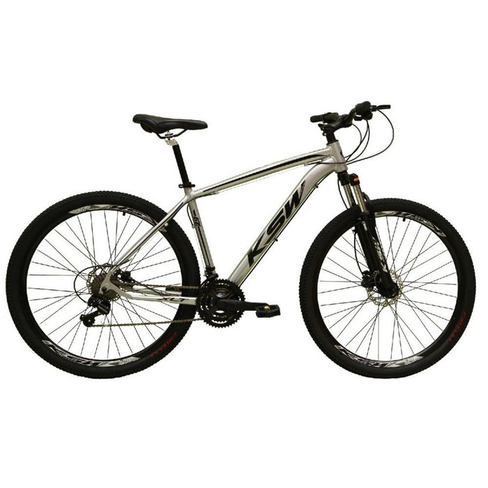 Bicicleta Aro 29 Ksw Xlt 24v K7 Câmbios Shimano Freio Hidráulico Garfo Com Trava - Prata - Tam. 17