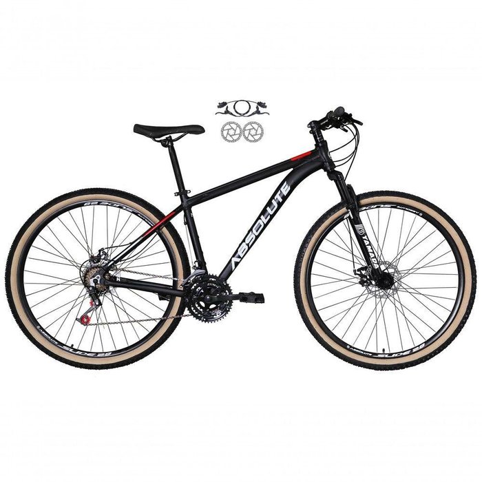 Bicicleta Aro 29 Absolute Nero 4 Freios Hidráulicos 24v Garfo Suspensão Pneu Com Faixa Bege - Preto/vermelho Tam.23