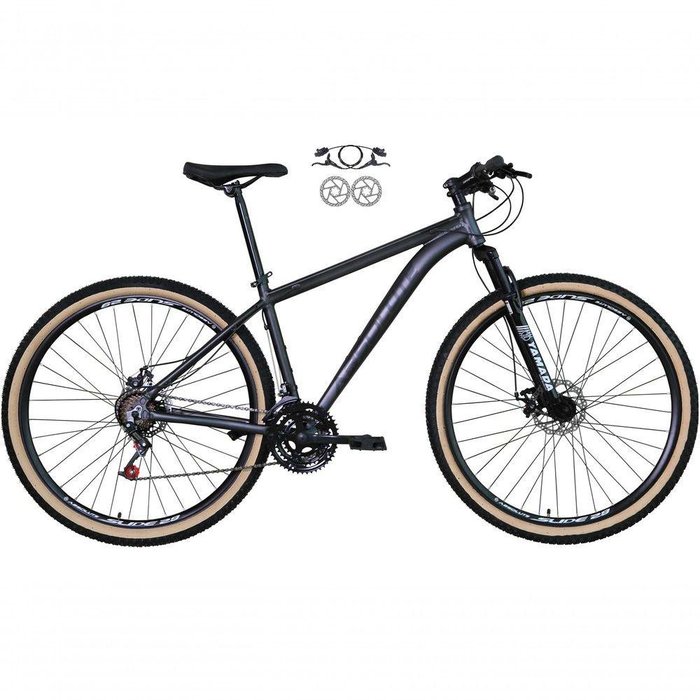 Bike aro 29 em alumínio , nova na caixa a pronta entrega, produto com ótima qualidade e acabamento, cabeamento interno, possui 24 marchas com sistema de alavancas rapid fire que a cada clique uma marcha é trocada, garfo com suspensão, sistema de freio a disco hidráulico(óleo). Bicicleta pré montada, vai precisar apenas fixar a roda dianteira, guidão, selim e pedais. Segue abaixo características da bike: Cor: ;Grafite