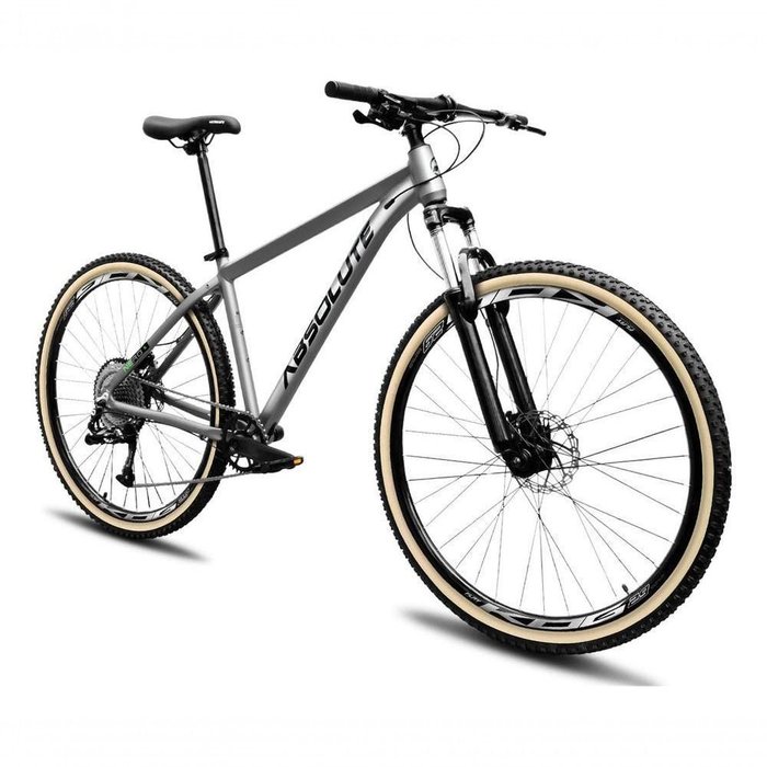 Bicicleta Aro 29 Absolute Nero 5 12v Garfo Trava no Guidão Freios Hidráulicos com Pneu Faixa Cinza