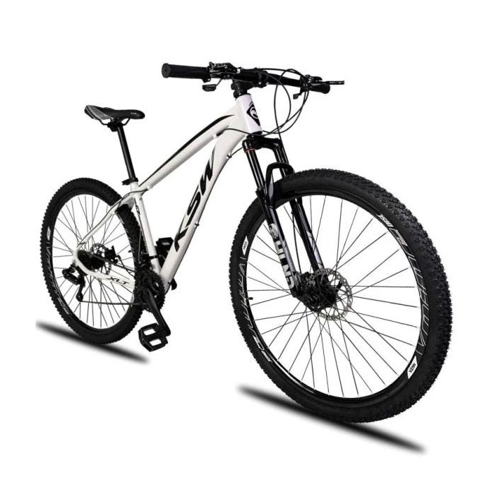 Bicicleta Aro 29 Alumínio 21v Cambios Shimano Freio Hidráulico Ksw - Branco com Preto - 15.5
