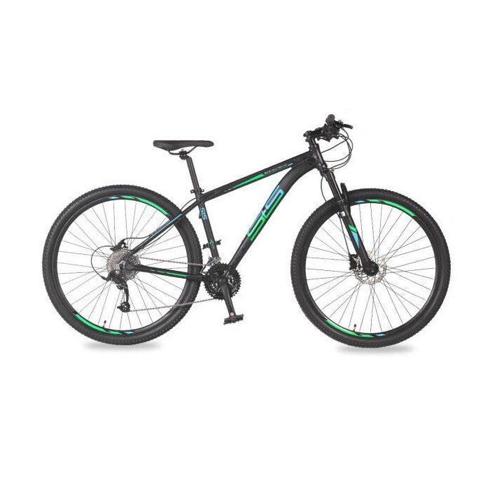 Bicicleta Aro 29 Alumínio 27v Freio Hidráulico Big Evolution 4.0 Preto Fosco com Verde e Acqua Blue.