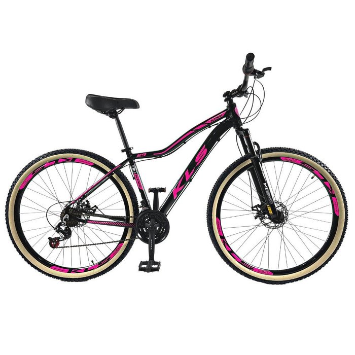 Bicicleta Aro 29 Alumínio King Freio a Disco 21 Marchas Feminina Pneu Slick Mtb Kls Preto com pink