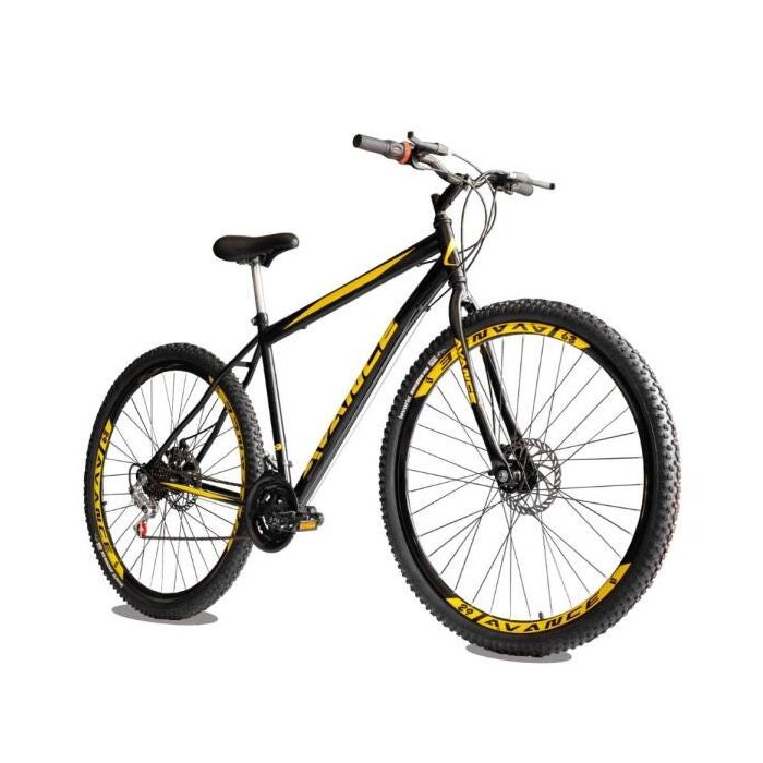 Bicicleta Aro 29 de Aço 21 Velocidades Freio a Disco Garfo Rígido - PRETA E AMARELO - 19