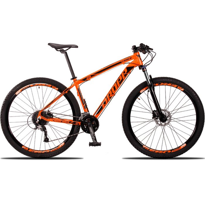 Bicicleta Aro 29 Dropp Race 27V Câmbios Importado Suspensão Trava - Preto+Laranja - 17 Preto+Laranja