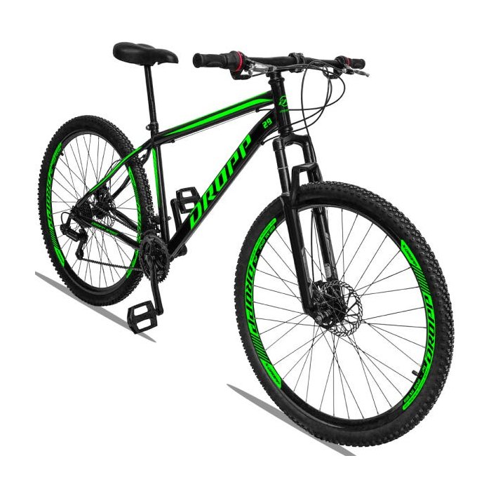 Bicicleta Aro 29 Dropp Sport 21V Freios a Disco E Suspensão:PretoVerde/19/Unissex Preto