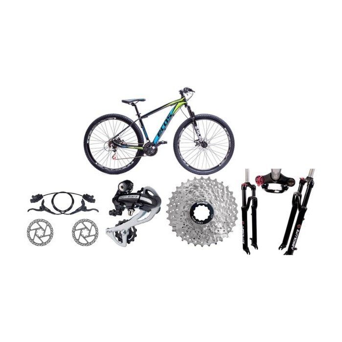Bicicleta Aro 29 Ecos 27v K7 9v Cambio Shimano Acera Freios Hidráulicos E Suspensão com Trava - Pret Preto com Azul