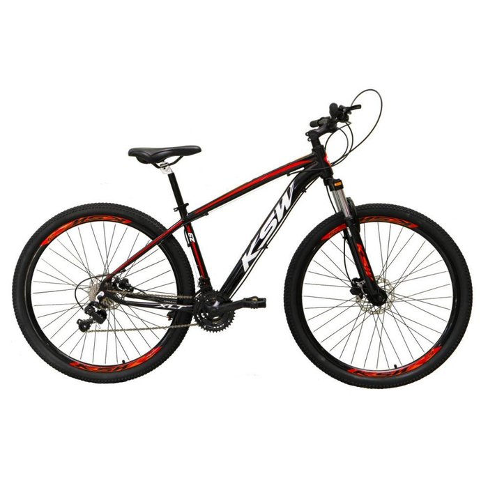 Bicicleta Aro 29 Ksw Xlt 27v Freio Hidráulico K7 Garfo Com Trava - Preto/vermelho/branco - Tam. 19
