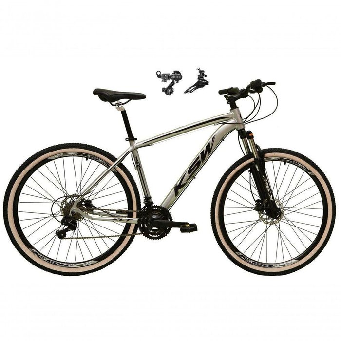 Bicicleta Aro 29 Ksw Xlt Alumínio 24v Câmbios Shimano Garfo Suspensão Pneu Faixa Bege Cinza 15 Cinza