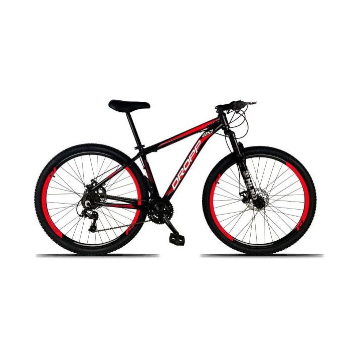 Bicicleta Aro 29 Quadro 15 Alumínio 21 Marchas Freio a Disco Mecânico - Dropp - Preto/Vermelho Preto/Vermelho