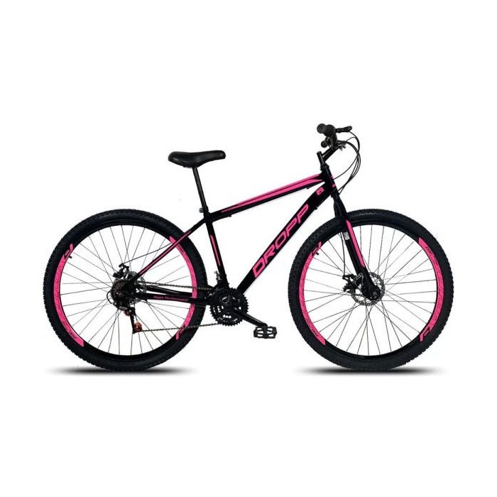 Bicicleta Aro 29 Quadro 17 Aço Freio a Disco Mecânico 21 Marchas - Dropp - Preto/Rosa