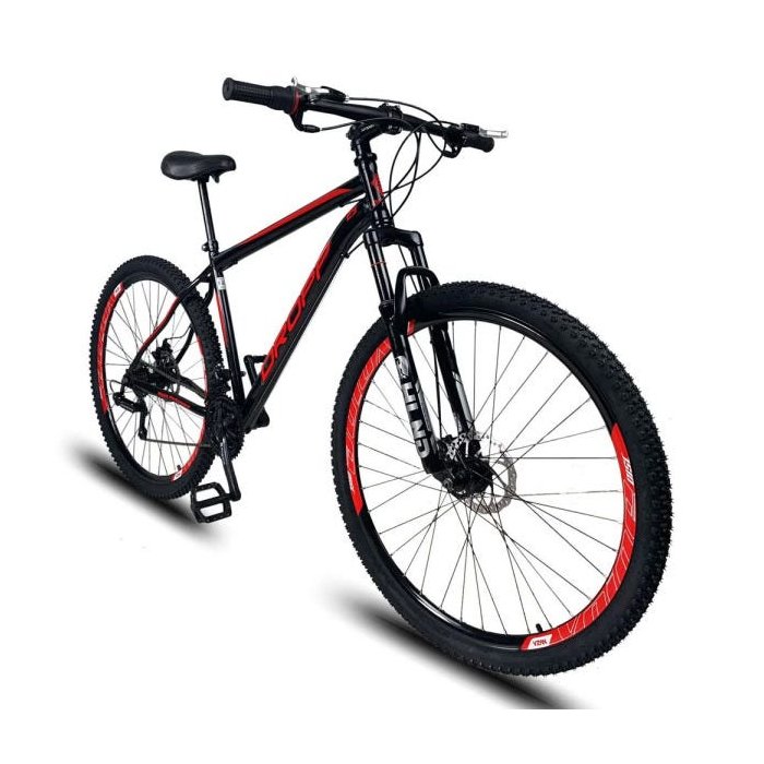Bicicleta Aro 29 Quadro 17 Aço Suspensão Freio a Disco Mecânico 21 Marchas - Dropp - Preto/Vermelho