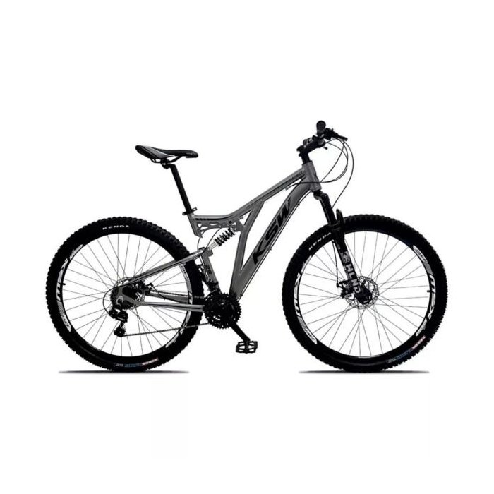 Bicicleta Aro 29 Quadro 19 Alumínio 21v Suspensão Freio a Disco Full Impact - KSW - Cinza/Preto Cinza/Preto