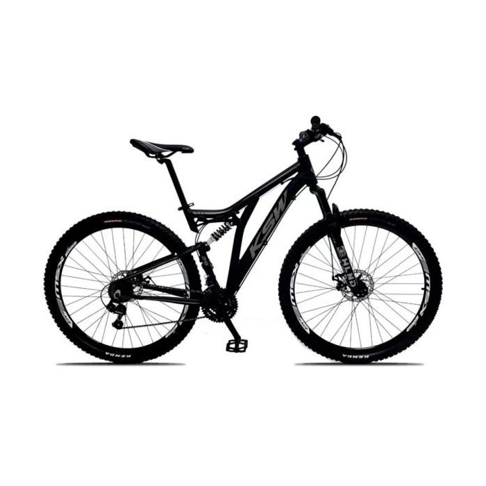 Bicicleta Aro 29 Quadro 19 Alumínio 21v Suspensão Freio a Disco Full Impact - KSW - Preto/Cinza Preto/Cinza