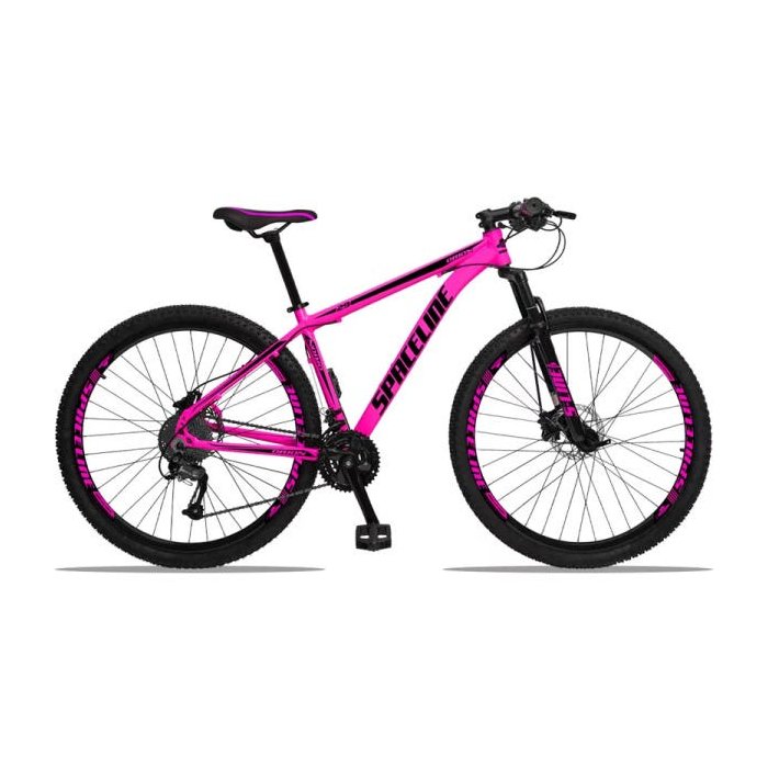 Bicicleta Aro 29 Quadro 19 Alumínio 27v Suspensão Freio Hidráulico Orion Rosa/Preto - Spaceline