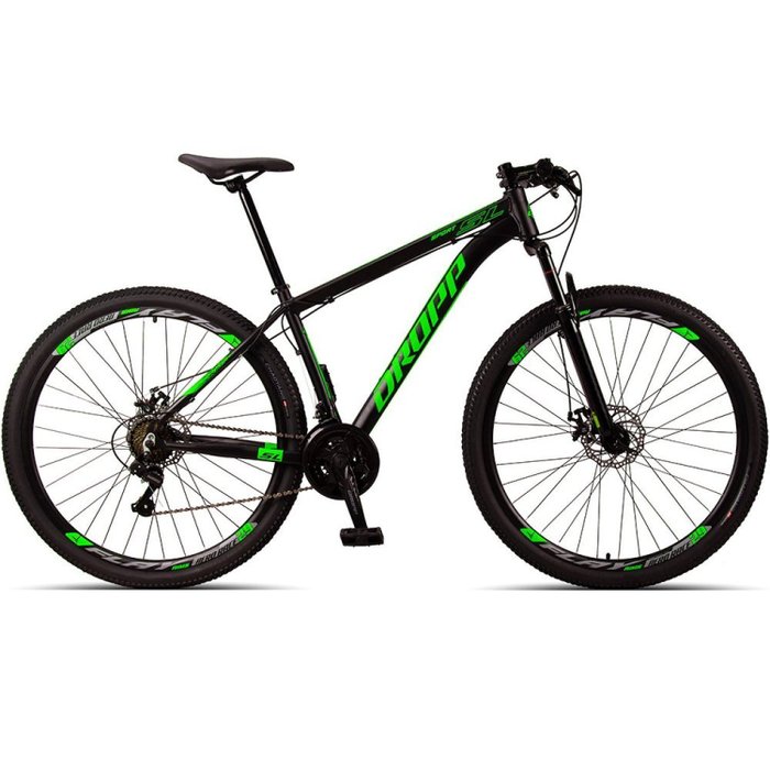 Bicicleta Aro 29 SL Sport 21V Câmbios Shimano Freio a Disco e Suspensão Dropp Preto/Verde