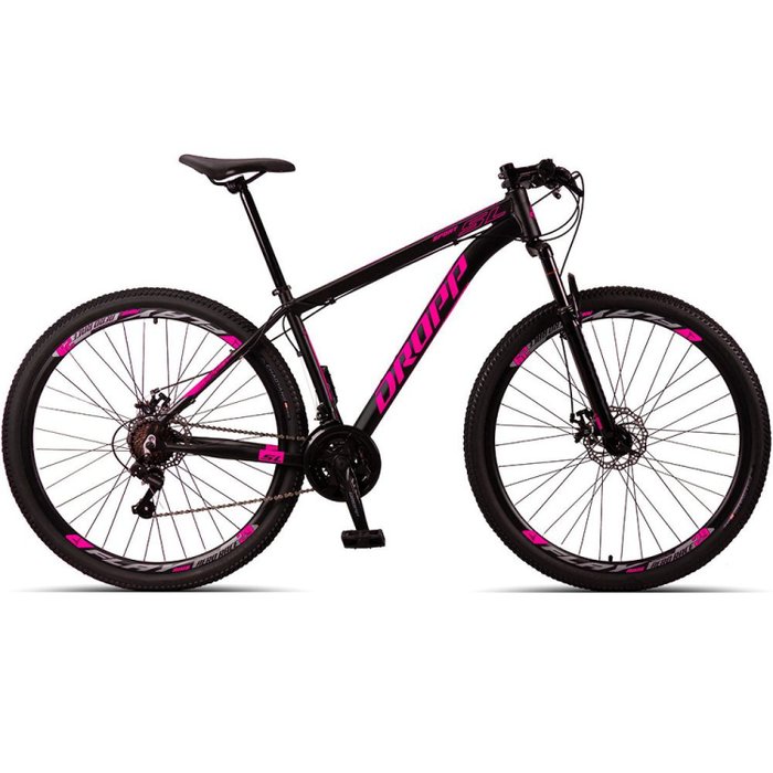 Bicicleta Aro 29 SL Sport 21V Câmbios Shimano Freio a Disco e Suspensão Dropp Preto/Rosa