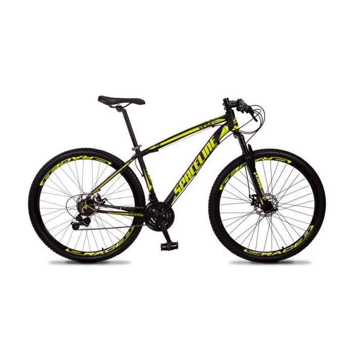 Bicicleta Aro 29 SPACELINE Vega 21v Câmbio Shimano Freio a Disco Preto e Amarelo - 17