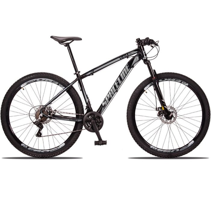 Bicicleta Aro 29 Vega 21V Câmbio Traseiro Shimano Freio a Disco e Suspensão Spaceline Preto/Cinza