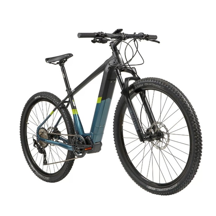 O quadro foi projetado para que a bateria seja integrada, além de contar com a tecnologia para eixo Thru axle e post mount. Ela vem equipada com o grupo de drivetrain da Shimano de 10 velocidades da nova linha Deore.