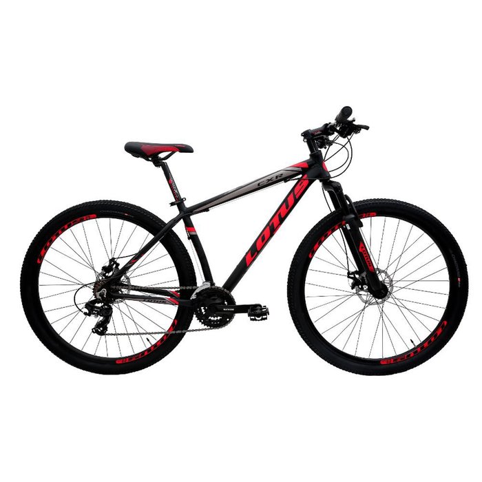 Bicicleta CXR Aro 29 Freio a Disco Mecânico MTB 21v - Lotus - Preto/Vermelho - 15.5