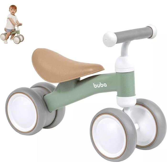 Bicicleta de Equilibrio sem Pedal Infantil 4 Rodas Buba Verde