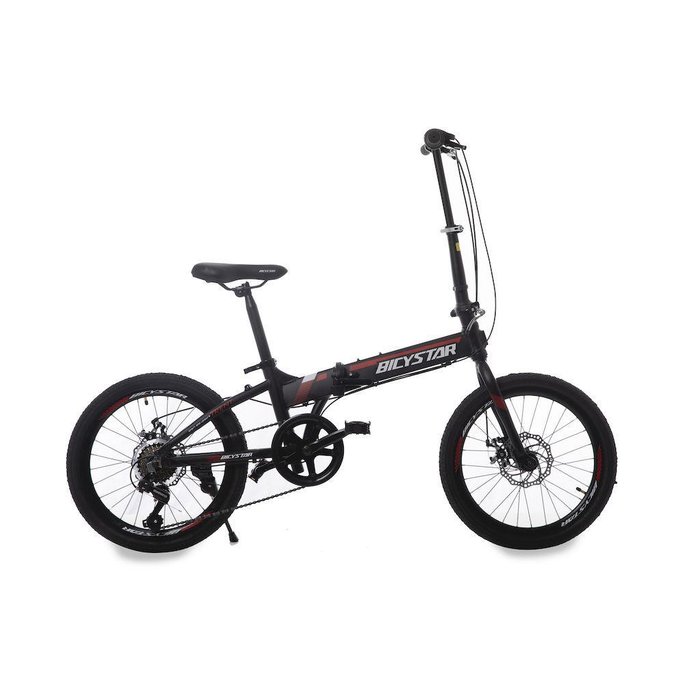 Bicicleta Dobrável em Alumínio Bicystar - Shimano 7V- Super Leve:Preto Preto