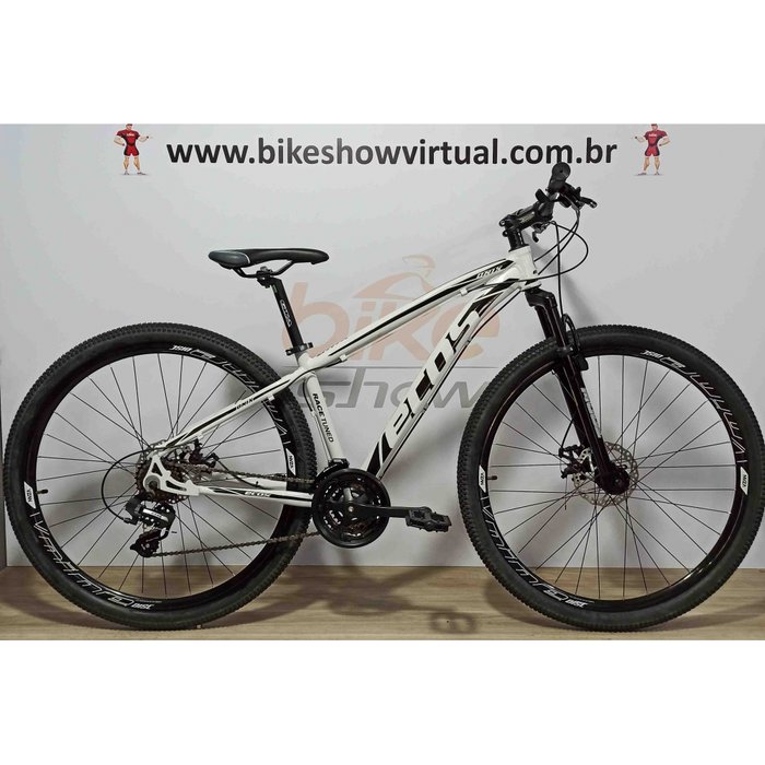 *** Especificações *** QUADRO E COMPONENTES * Quadro: ECOS Onix em alumínio * Suspensão: MODE em aço * Guidão: GTA modelo curvo 31,8 mm em alumínio (posição bem confortável) * Suporte de Guidão (Mesa): GTA 31,8 mm em alumínio * Manopla (Punhos): GTA emborrachada * Caixa de direção: PACO Over Ahead semi integrada * Selim: SELLE ROYAL Siam médio * Canote de Selim: GTA 27,2 mm em alumínio com carrinho * Abraçadeira de Selim: GTA em alumínio com blocagem de aperto rápido GRUPO DE MARCHAS * Alavancas (passadores): VELOFORCE Rapid Fire 3 X 8 velocidades com Freio Integrado * Pedivela: ECOS coroa tripla nylon 42/34/24 dentes * Movimento Central: PACO cartucho selado COM ROLAMENTOS * Pedal: ECOS em nylon modelo plataforma com esfera * Corrente: YABAN 24 velocidades * Câmbio dianteiro: SUNRUN Index para coroa Tripla * Câmbio traseiro: GTA Index 8 velocidades * Roda Livre: SUNRUN 8 Velocidades 14/28 dentes RODAS * Aros: VZAN Vnine 36 furos em alumínio parede dupla * Raios: VELOFORCE zincados na cor Preta * Cubos: VELOFORCE em alumínio 36 furos com Blocagem de aperto rápido * Pneus: VEE RUBBER 29 x 2.00 Felix * Câmaras: PACO com válvulas americana (grossa) SISTEMA DE FREIOS * Freios: PACO Mecânico em alumínio * Discos de freios: PACO 160 mm em aço inox * Peso Aproximado: 14,5 kg (Pedal instalado) Como vou receber a bicicleta? Você Amigo Cliente irá receber sua Bike lubrificada. Poucos itens terão que ser posicionados para que a Bike esteja pronta para a sua atividade. * Guidão - Maçanetas de freio e Trocadores de marcha já estão instalados e previamente regulados. * Selim - Posicionar canote no selim e instalar na Bike. * Pedal - Observar com atenção o lado correto de cada pedal. A instalação no lado errado irá espanar a rosca do pedivela e pedal. * Roda dianteira - A roda está montada com pneu. Só posicionar a roda no garfo (suspensão). * Calibrar os pneus - 40 libras em média para pneus aro 29 é suficiente. Enviamos a Bike o mais próximo possível da condição de uso. Caso não tenha conhecimento de como posicionar os itens acima, recomendamos levar a bike até um Profissional especializado. Caso tenha mais dúvidas deste produto, entre em contato conosco. Equipe BIKE SHOW VIRTUAL de São Gabriel da Palha no ES.
