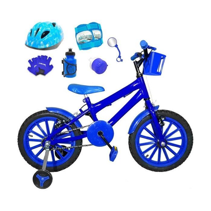 Bicicleta Infantil Aro 16 Azul Kit Azul com Capacete e Kit Proteção
