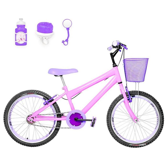 Bicicleta Infantil Aro 20 Aero + Kit Passeio Rosa e Lilás
