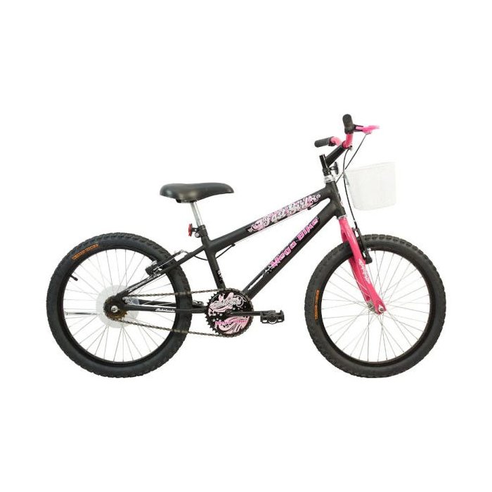 Bicicleta Infantil Aro 20 Freios V-Break Quadro Aço Fast Girl Rebaixada Preto Pink - Mega Bike