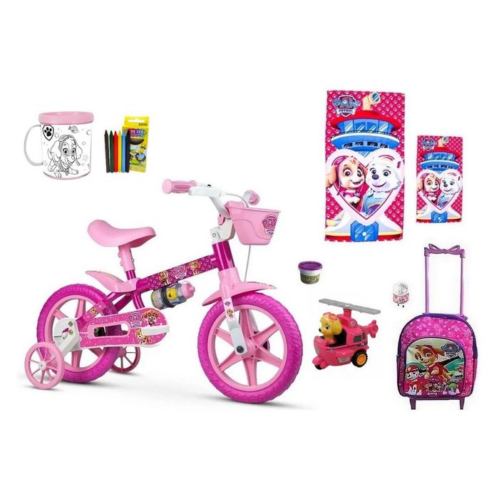 Bicicleta infantil skye patrulha canina aro 12 com 9 itens