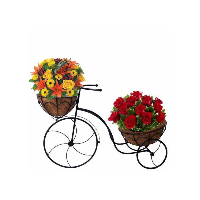 Bicicleta Jardim Cachepo Duplo Metal Decorativa Planta Vaso (FRO-2) Braslu