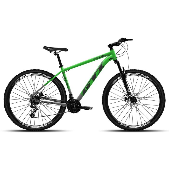 Bicicleta Mtb Aro 29 Gti Roma 21 Marchas e Freios a Disco Cor:preto Degradê+verde;tamanho:17