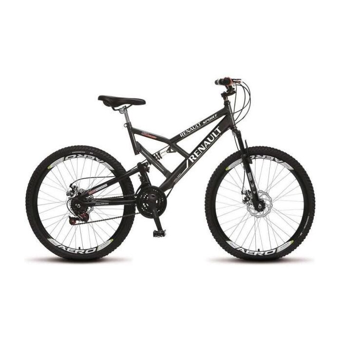 Bicicleta Renault Aro 26 21M Dupla Suspensão Freios á Disco - 549.11D Preto