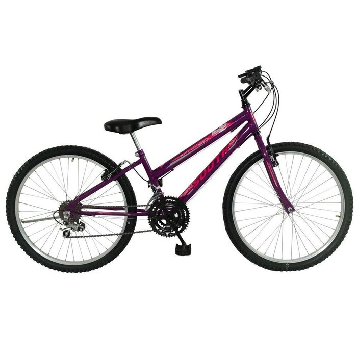 Bicicleta aro 24", 18 VELOCIDADES, com descanso lateral, feita em aço carbono, freio V-brake, pneus de borracha MTB, pedivela monobloco de aço, corrente de aço, pedal MTB Nylon, selim tipo MTB espuma, movimento central colar-esfera, cubos de aço. Medidas da bicicleta: L 59 cm x A 68 cm x C 145 cm. Peso do produto: 14,1 Kg. Cor violeta. Southbike é especializada na produção de bicicletas, desde 1998, nos estilos Mountain Bike, Freeride, Infantil e Urbana. Com fabricação própria de toda linha de quadros, garfos, guidões, bagageiros em aço carbono e na distribuição de peças e acessórios. OBS.: O produto vem desmontado