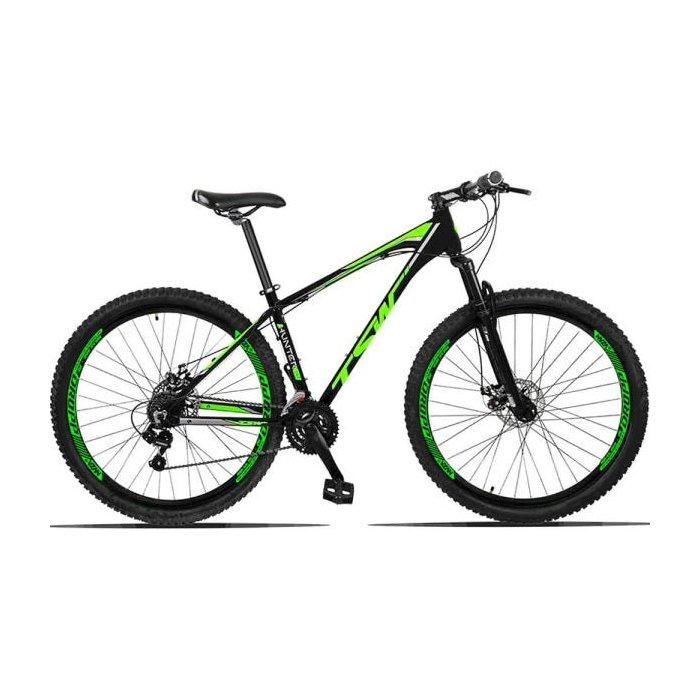 Bicicleta TSW Hunter Aro 29 Câmbio Shimano 21v Freio a Disco - Preto+Verde - 17