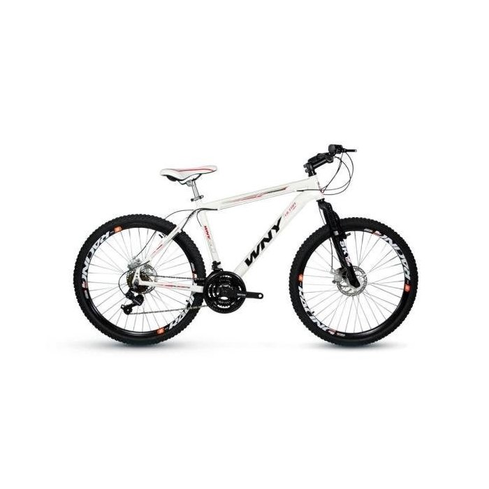 Bicicleta WNY Aro 26 Freio Disco 24 MarchasInformações Técnicas:Marca WnyModelo DiscoGênero: UnissexAro Aero 26 alumínio (parede dupla)Cubo dianteiro/traseiro 36F preto com blocagem ImportadoRaio 255x2.0 zincadoCâmara de ar 26 ImportadaPneu 26x1.95 de cravo pretoSelim MTB premium Royal Ciclo Canote de selim 27,2 alumínioAbraçadeira de alumínio com blocagemMovimento central semi selado ImportadoMovimento de direção over ahead pretoPedivela com engrenagem tripla alumínio pretaAlavanca eze fire 8 velocidades ImportadaSuporte de guidão alumínio pretoGuidão curvo expandido aço pretoRoda livre 8 velocidades Index rosca ImportadaCâmbio dianteiro TZ 31 ShimanoCâmbio traseiro Tx 800 sem gancheira ShimanoCorrente fina Index ImportadoPedal 9/16 alumínioGarfo de suspensão 26 Over em aço preto ImportadoFreio a disco dianteiro e traseiro mecânico ImportadoGarantia: 03 meses contra defeito de fabricaçãoPaís de Origem BrasilCores disponíveis: Branca ou PretaQuadro de alumínio 26 WY quadro padrão 19, recomendado para pessoas de 1,70m a 1,85m. Para pessoas abaixo de 1,70m recomendamos o quadro 17.IMPORTANTETodas encomendas possuem rastreamento por transportadora.A empresa não se responsabiliza por recolhimento obrigatório de Impostos ICMS por ST cobrado em alguns estados.Imagens meramente ilustrativas, podendo alterar sua estrutura de acordo com tamanho e cor escolhido.Kit Shimano: Para produtos com Kit Shimano, favor conferir peças e componentes na descrição do anúncio.Produto enviado pré-montado, faltando o encaixe da roda dianteira, guidão, selim e pedais. Sugerimos a regulagem de câmbio e freios devido o transporte.Caso a cor e tamanho não sejam informadas em um prazo de 7 dias, serão enviados a cor e tamanho disponíveis em estoque.Confira seus dados pessoais, dados de entrega e do produto antes de efetuar o pagamento, pois não será possível a alteração de dados, Nota Fiscal ou produto após a compra.