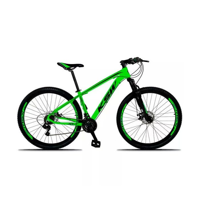 Bicicleta XLT Aro 29 Quadro 15 Alumínio Suspensão Freio Disco 21 Marchas - KSW - Verde/Preto Verde/Preto